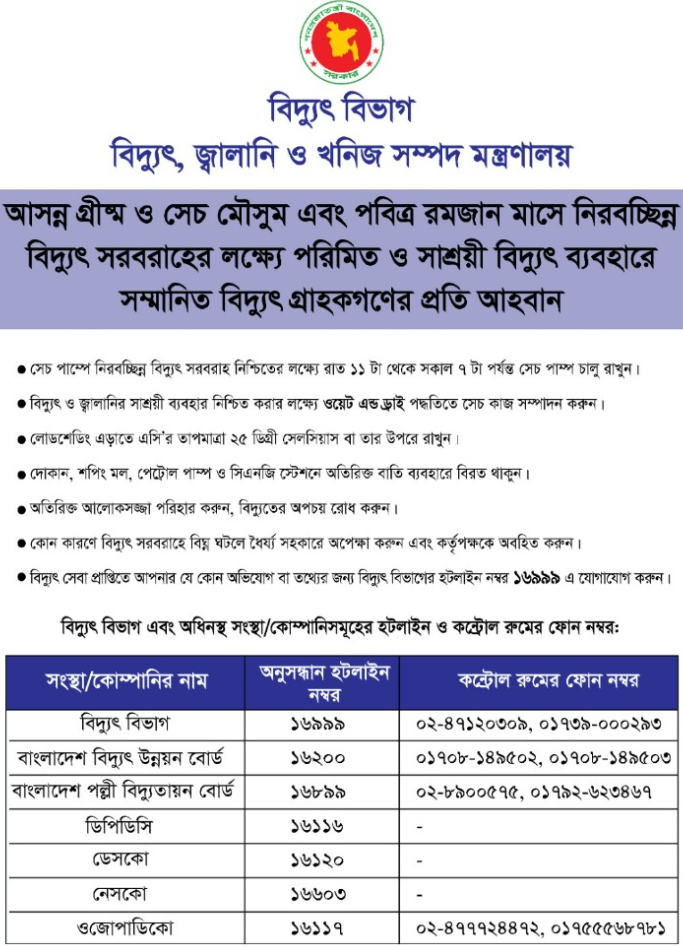 পবিত্র রমজান ও গ্রীষ্মকালীন বিদ্যুৎ সাশ্রয়ের লক্ষ্যে সচেতনতামূলক বিশেষ আলোচনা অনুষ্ঠান